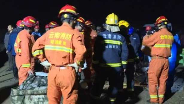 சீனாவின் கியாசூ மாகாணத்தில் உள்ள பீஜி மற்றும் சிச்சுவான் மாகாணத்தின் தின்கிங்யாபின் நகரங்களை இணைக்கும் அதிவிரைவு நெடுஞ்சாலையில் சுரங்கப்பாதை அமைக்கப்பட்டு வருகிறது.இந்த நிலையில் சுரங்கப்பாதைக்குள் வழக்கமான கட்டுமான பணிகள் நடந்து கொண்டிருந்தது. ஏராளமான தொழிலாளர்கள் பணியில் ஈடுபட்டிருந்தனர். அப்போது, சற்றும் எதிர்பாராத வகையில் சுரங்கத்துக்குள் வெடிவிபத்து நேரிட்டது. அதனை தொடர்ந்து சுரங்கம் முழுவதும் தீப்பற்றி எரிந்தது.