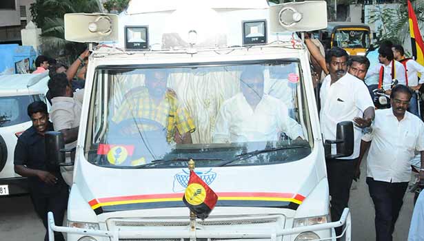 இந்நிலையில், சென்னையில் அ.தி.மு.க. உள்பட கூட்டணி கட்சி வேட்பாளர்களை ஆதரித்து விஜயகாந்த் பிரசாரத்தில் ஈடுபட்டு வருகிறார். அவர் நடைபெறவிருக்கும் நாடாளுமன்ற தேர்தலில் போட்டியிடும் தே.மு.தி.க. வடசென்னை வேட்பாளர் அழகாபுரம் ஆர். மோகன்ராஜை ஆதரித்தும், கூட்டணி கட்சி வேட்பாளர்களான அ.தி.மு.க. தென்சென்னை வேட்பாளர் ஜெயவர்தன் மற்றும் பா.ம.க. மத்திய சென்னை தொகுதி வேட்பாளர் சாம்பாலை ஆதரித்தும் மூன்று நாடாளுமன்ற தொகுதிகளிலும் பிரசார பயணம் மேற்கொள்கிறார்.