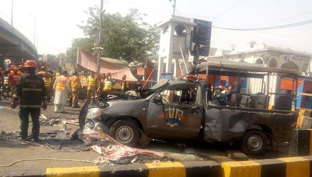 பாகிஸ்தானின் லாகூர் நகரில் உள்ள புகழ்பெற்ற சூபி மசூதியில் இன்று காலை வழக்கமான தொழுகை நடைபெற்றது. மசூதிக்கு வெளியே போலீசார் பாதுகாப்பு பணியில் ஈடுபட்டு இருந்தனர். அப்போது, போலீசாரின் வாகனம் அருகே திடீரென குண்டு வெடித்தது. இதில் போலீஸ் வாகனம் கடுமையாக சேதம் அடைந்தது.