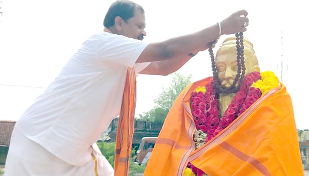 திருவள்ளுவர் சிலைக்கு காவி துண்டு, ருத்திராட்ச மாலை அணிவித்து வழிபாடு : அர்ஜூன் சம்பத் கைது