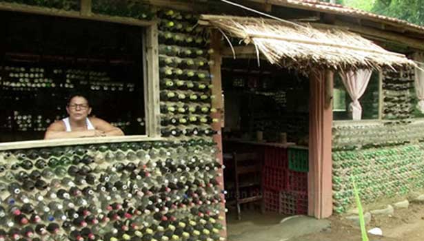 பிரேசிலில் கண்ணாடி பாட்டில்களை கொண்டு வீடு கட்டிய பெண்