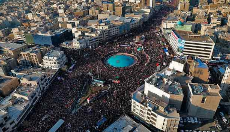 அவர்கள் அனைவரும் கறுப்பு நிற உடையில் வந்திருந்தனர். இதனால் டெஹ்ரான் நகரமே கறுப்பு நிறமாக மாறியது போல காட்சியளித்தது. மக்கள் தங்கள் கைகளில் கறுப்பு மற்றும் ஈரான் நாட்டு கொடிகளை ஏந்தியபடி அமெரிக்காவுக்கு எதிராக கோஷங்களை எழுப்பி பேரணியாகச் சென்றனர்.