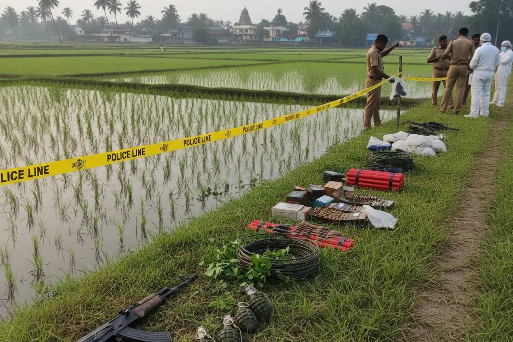 திக்வெல்ல – கிரினெலியகந்த பகுதியில், வயல் ஒன்றில் சந்தேகத்திற்குரிய, வெளிநாட்டில் தயாரிக்கப்பட்ட ரிவால்வர், ஒரு கைக்குண்டு மற்றும் 03 ரி-56 வெடிமருந்துகள் என்பன நேற்று திங்கட்கிழமை (26) பிற்பகல் பொலிஸ் விசேட அதிரடிப்படையினரால் கண்டுபிடிக்கப்பட்டுள்ளன.